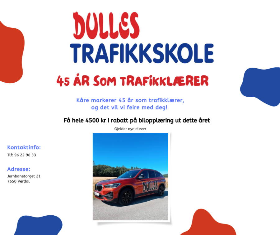 Sjefen feirer 45 år som trafikklærer og vi ønsker å feire det med våre nye elever.